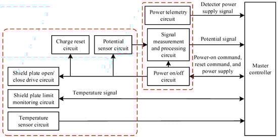The designed potential probe circuit system includes a potential measurement circuit, a shielding plate opening/closing drive circuit, a zeroing circuit, and a temperature acquisition circuit, as shown in Figure 6.