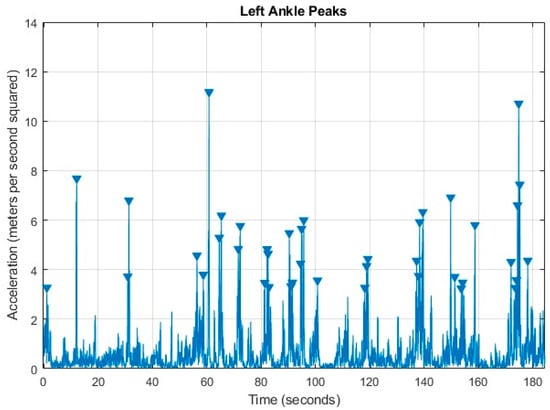 Example of movement count for a single limb. In this case, we display the movement of the left ankle. Triangles represent each occurrence of a movement.