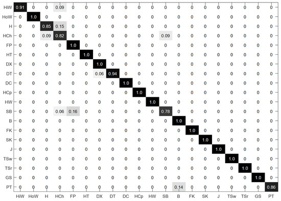 The confusion matrix of the MSR Action 3D dataset. The darker the background color of each grid in the figure, the higher the recognition rate it represents.