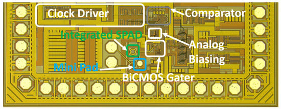 Chip photo of BiCMOS SPAD receiver.