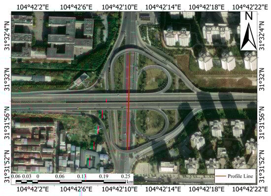 A notable feature of FC-1 is its higher resolution compared to that of Sentinel-1, which enables more accurate capture of deformation details, especially when using the DSI method (as shown in Figure 9). The dense PS and DS points obtained from FC-1 using the DSI method provide comprehensive coverage of the entire interchange bridge, allowing for effective detection of local deformations. Using both the PSI and DSI methods, we obtained deformation velocity profiles for the same area from both FC-1 and Sentinel-1. The selection criterion involved considering only points within 10 m of the profile line (as shown in Figure 10). These profiles demonstrate that after phase optimization, the DSI method increases the number and density of the monitoring points, enhancing the continuity of the profile and reducing the dispersion of the deformation velocity points. As shown in Figure 11, the DSI method significantly reduces the dispersion of the deformation velocity profiles for both satellites, with values decreasing from 4.50 mm and 5.56 mm to 1.68 mm and 2.38 mm, respectively. This reduction in dispersion makes it easier to confirm that the deformation velocity for this section of the road ranges from −10 mm/y to 0 mm/y. Additionally, the higher point density improves the profile continuity. As illustrated in Figure 9, the dense PS and DS points obtained using FC-1 via the DSI method enable accurate measurement of the deformation velocity at specific locations on the road, eliminating the need for interpolation to estimate these values. The combination of FC-1’s high-resolution data and the DSI method provides a powerful tool for monitoring urban surface deformations.