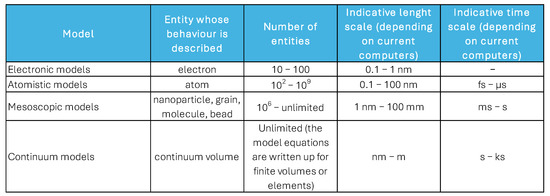 Material models, entity, length scale, and time scale [1].