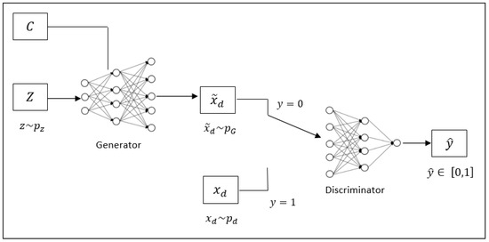 During training, both the generator and discriminator aim to reduce their respective loss functions. Equation (8) shows the loss function for the discriminator, which seeks to maximize the value function .