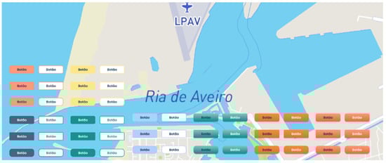 This section explores the crucial phase of designing and validating the UI elements. An effective UI design that aligns with users’ needs is essential for enhancing the user’s experience and interactions with the system [,]. This is particularly important in maritime contexts, where visual clarity and usability are vital to supporting maritime safety, especially during decision-making and risk communication processes.