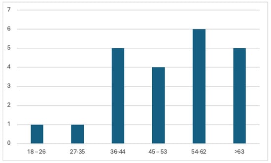 The participants in this study spanned a diverse age range (Figure 11), reflecting the multifaceted nature of the maritime community. The age distribution underscores the inclusivity of the study sample, encompassing both seasoned sailors (e.g., leisure) and those embarking on more complex maritime journeys. However, it can be seen that there is a greater concentration of people aged over 36. The age diversity enriches this research, allowing us to understand the challenges and experiences faced by sailors across different life stages.