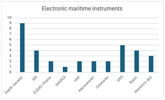 The study spreads to vessel ownership and electronic instrumentation. These aspects significantly influence the operational capabilities and safety practices of sailors. It is important to note that out of these participants, two did not have their own vessel (n = 2), eight participants (n = 8) did not have electronic instrumentation on their vessel, and only nine participants had instrumentation (n = 9).