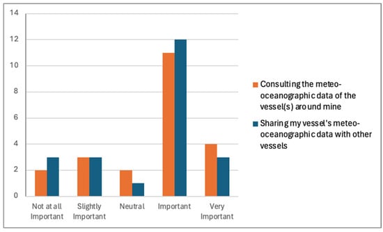 - The questionnaires aimed to identify participants’ characteristics (e.g., navigator’s license, sailing frequency, onboard electronics) and opinions about the functional requirements of the maritime data-sharing system.