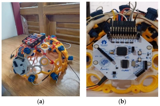(a) Image of the ultra-cortex ‘Mark IV’; (b) Cyton Board.