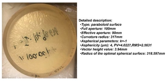 - Long, X. Research on Aspherical Testing and Algorithm Based on Sub-Aperture Stitching Method and Lateral Shearing Interferometry. Master’s Dissertation, Nanjing University of Technology, Nanjing, China, 2020. [Google Scholar]