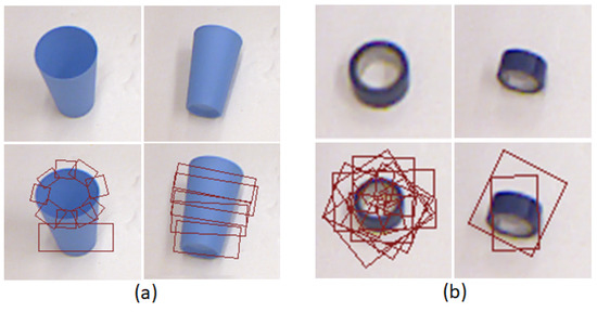 We also constructed a dataset which contains 2080 images for 21 realistic objects. These realistic objects have the similar primitive shapes to those objects selected from Cornell [22] and Jacquard [23], and they were taken in various angles and scales. Figure 3c presents a group of them in horizontal level which are similar to those in Figure 3a,b. We named this dataset CasiaZhuasape, and a copy of this dataset is available at the address [52].
