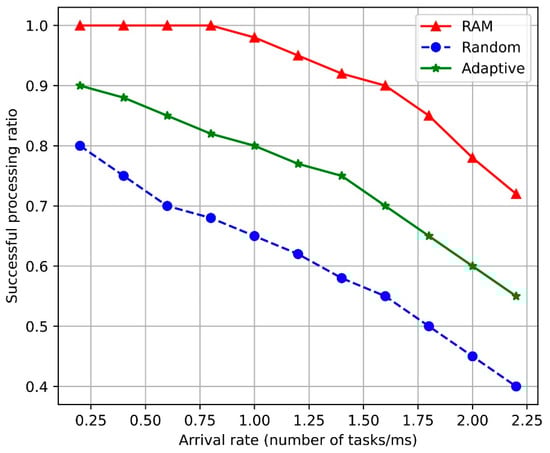 The system performance was evaluated based on the task-completion rate, which indicates the effectiveness of task processing within the allowable delay limits. A task is deemed to be successfully processed if its total service delay is less than or equal to the maximum allowable response time .