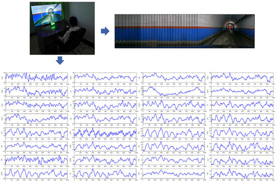 The driving environment significantly affects the cognitive load and performance of drivers. Researchers have conducted detailed analyses of various driving scenarios, such as tunnel conditions [7,8,9], urban road conditions [10,11], and highway conditions [12,13]. In underground coal mine environments, drivers encounter unique stimuli such as narrow passages, irregular road surfaces, and specific interaction scenarios [14,15]. These factors can heighten driving risks and impact cognitive and response states. Recent research in coal mine environments has primarily focused on analyzing the concentration of remote control mine operators and monitoring the fatigue of miners. Studies have shown that various environmental and non-environmental factors can influence the concentration of remote control mine operators. Environmental factors include noise, temperature, humidity, and illumination, while non-environmental factors encompass work duration, workload, and psychological stress. These factors can elevate low-frequency EEG components and suppress high-frequency EEG components to some extent [16]. Sun et al. [17] investigate sustained attention among visual display terminal operators in smart mines by combining subjective assessment scales with objective physiological indicators. Additionally, Xu et al. [18] developed a method using a convolutional neural network (CNN) to classify the states of miners as normal, critical, or fatigued, achieving high classification accuracy by comparing EEG power spectral density and relative power spectral density. While much of the existing research focuses on monitoring work states and the impact of work environments on concentration in mining operations, there is a lack of in-depth investigation into how stimuli from mine transport vehicle interactions affect driver EEG signals. Analyzing changes in the cognitive and response states of drivers during mine transport vehicle interactions using EEG technology could provide valuable insights into brain function states and enhance driving safety and operational efficiency.