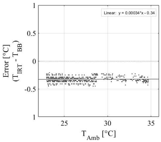 Ambient temperature effect on IRT error for IRT 5, where IRT error is the difference between the blackbody temperature (TBB), and the IRT object temperature (TIRT).