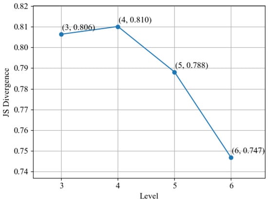 When performing wavelet packet decomposition, the key is to determine the appropriate decomposition scale in order to effectively distinguish between normal vibration data and failure vibration data, while avoiding overfitting and noise interference. Jensen–Shannon (JS) divergence focuses on the overall difference between two distributions, measures the similarity or difference between two probability distributions, and can better capture the difference between features.