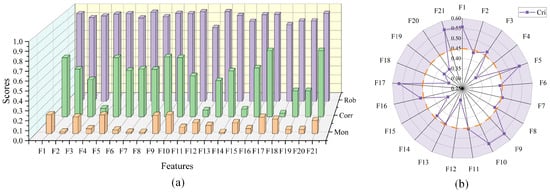 - The features’ , , and were calculated as follows:where is a unit step function, specifically expressed as follows:The value range for the above three feature evaluation indicators is [0, 1]. The higher the value, the stronger the correlation, monotonicity, or robustness. Before calculating the three feature evaluation indicators, the input data need to be normalized.