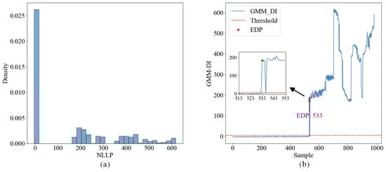 - The value of “” can be set according to the 3 principle, and its calculation formula is as follows []:where is set to the number of samples corresponding to the running data when the bearing is healthy and trouble-free in early service. In the case of abandoning the abnormal discrete points and setting three consecutive deviations from the threshold range, the first deviation from “” is taken as the beginning of the degradation stage, the EDP.