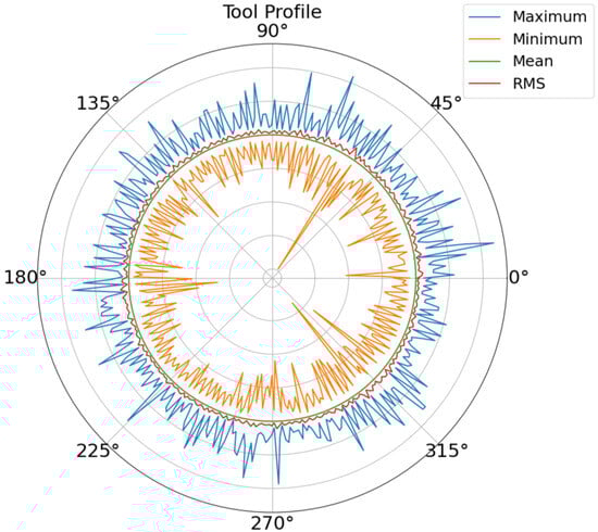 Tool profile estimation with maximum, minimum, mean, and RMS values.