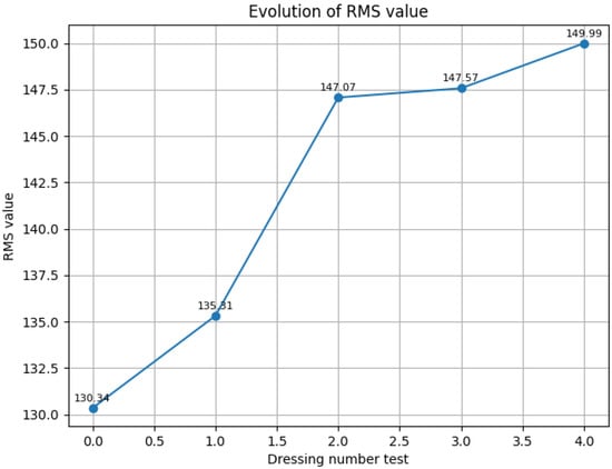 Evolution of RMS value over consecutive dressing operations.