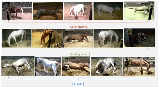 To achieve a model with better performance and robustness, as shown in Figure 3, we randomly selected a subset of images from the dataset for data enhancement. Three methods were employed: Color Jittering, Adding Noise, and CLAHE (Contrast Limited Adaptive Histogram Equalization). Color Jittering enhances the model’s robustness against variations in lighting and color changes. Adding Noise effectively improves the model’s resistance to noisy environments. CLAHE enhances the model’s ability to process images with uneven lighting conditions.