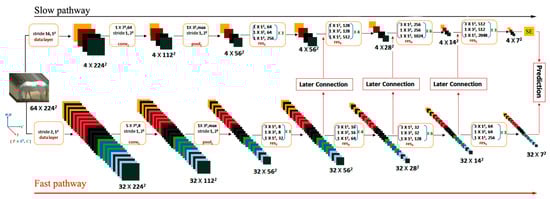 30. Feichtenhofer, C.; Fan, H.; Malik, J.; He, K. SlowFast Networks for Video Recognition. In Proceedings of the IEEE International Conference on Computer Vision, Seoul, Republic of Korea, 27 October–2 November 2019. [Google Scholar]