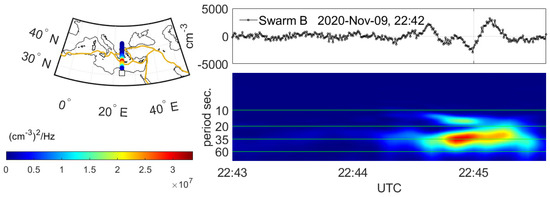 - Balasis, G.; Papadimitriou, C.; Daglis, I.A.; Pilipenko, V. ULF wave power features in the topside ionosphere revealed by Swarm observations. Geophys. Res. Lett. 2015, 42, 6922–6930. [Google Scholar] [CrossRef]