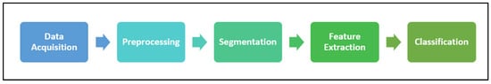 As shown in Figure 1, the stages involved in sign language recognition can be broadly divided into data acquisition, pre-processing, segmentation, feature extraction, and classification [8,9]. In data acquisition, single frames of images are the input for static sign language recognition; video, or continuous frames of images, is the input for dynamic signs. In order to enhance the system’s overall performance, the preprocessing stage modifies the image or video inputs. Segmentation, or the partitioning of an image or video into several separate parts, is the third step. A good feature extraction arises from perfect segmentation [10]. Feature extraction is performed to transform important parts of the input data into sets of compact feature vectors. When it comes to the recognition of sign language, the features that are extracted from the input hand gestures should contain pertinent information and be displayed in a condensed form that helps distinguish the sign that needs to be categorized from other signals. The final step is classification. Machine learning (ML) techniques for classification can be divided into two categories: supervised and unsupervised [8]. Through the use of supervised machine learning, a system can be trained to identify specific patterns in input data, which can subsequently be utilized to predict future data. Using labeled training data and a set of known training examples, supervised machine learning infers a function. Inferences are derived from datasets containing input data without labeled responses through the application of unsupervised machine learning. There is no reward or penalty weightage indicating which classes the data should belong to because the classifier receives no labeled responses. Deep learning (DL) approaches have surpassed earlier cutting-edge machine learning techniques in a number of domains in recent years, particularly in computer vision and natural language processing [4]. Eliminating the need to construct or extract features is one of the primary objectives of deep models. Deep learning enables multi-layered computational models to learn and represent data at various levels of abstraction, mimicking the workings of the human brain and implicitly capturing the intricate structures of massive amounts of data.