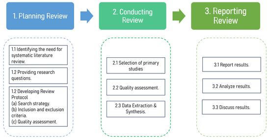 The systematic literature review gathers and synthesizes the papers published in various scientific databases in an orderly, accurate, and analytical manner about an area of interest. The goal of the systematic approach is to direct the review process on a specific research topic to assess the advancement of research and identify potential new directions. This study adopts the Preferred Reporting Items for Systematic Reviews and Meta-Analyses (PRISMA) guidelines [16]. The research methodology encompasses three key stages: planning, conducting, and reporting the review. Figure 3 provides a visual representation of the methodology applied in this study.