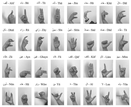 - Alshomrani, S.; Aljoudi, L.; Arif, M. Arabic and American Sign Languages Alphabet Recognition by Convolutional Neural Network. Adv. Sci. Technol. Res. J. 2021, 15, 136–148. [Google Scholar] [CrossRef]