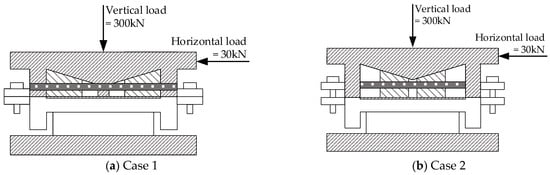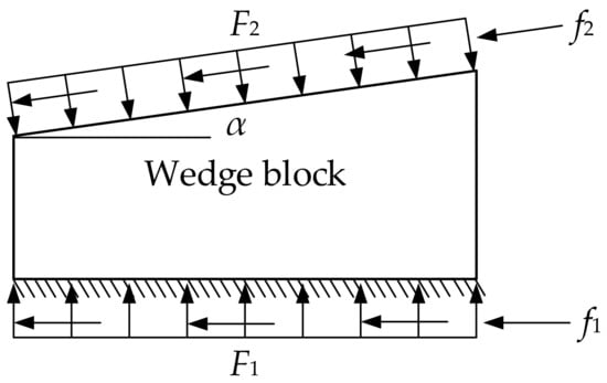 When the superstructure exerts pressure on the wedges, it creates a tendency for the wedges to move horizontally. This results in friction. As a result, there can be a situation where, regardless of the magnitude of the applied external force, the wedges cannot slide (see Figure 3). This phenomenon is known as mechanical self-locking [31,32].