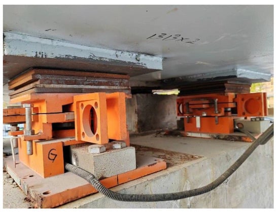To verify the effectiveness of the AIFMB in monitoring the actual bridge, the original bearings of the experimental bridge were replaced with the AIFMB (see Figure 14). Additionally, adjustments were made to ensure compatibility between the bearings and the bridge structure. This guarantees that the new bearings can effectively utilize their height adjustment and force measurement features.