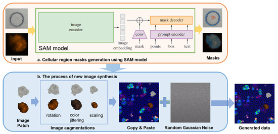 In this way, the proposed image synthesis method not only increases the diversity of the training dataset but also improves the model’s robustness by simulating various imaging conditions and cellular appearances. The pipeline of the image synthesis is shown in Figure 2.