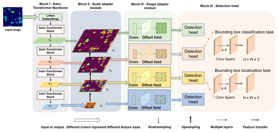 As shown in Figure 3, We employed the Swin Transformer network as the backbone for the proposed detection framework to extract image features. The architecture includes two adaptive modules designed specifically to handle the heterogeneity of CTCs in terms of scale and shape: the scale adaptive module and the shape adaptation module.
