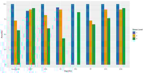 Mentis et al. [1] present some of the AI and ML applications for solving biomedical issues related to psychological stress, proving that AI and ML have been able to predict stress and detect the brain’s normal states vs. abnormal states with around 90% accuracy. Wei Wang et al. [2] conducted a systematic review and meta-analysis to identify, classify, and evaluate the evidence for novel wearable and non-contact devices that measure heart rate, respiratory rate, and oxygen saturation in the clinical setting. Mitar Simić et al. [3] developed a methodology for the realization of wearable, rechargeable battery-powered, small-sized, electronic devices for recording electromyogram (EMG) signals, suggesting that multiday continuous functionality is possible. Additionally, they combined the customizable EMG recording system with an efficient cross-correlation-based algorithm to monitor contractions/relaxations of muscles. Weiwei Jiang et al. [4] developed a neural network boosting regression model (i.e., NNBoost) and demonstrated that NNBoost outperforms other machine learning algorithms. Buwen Liang et al. [5] developed an ensemble learning strategy, synthesizing the benefits of Linear, SVR, MLP, KNN, Gaussian Process, and Decision Tree Algorithms, to detect salmon freshness and shelf-life and coupled sensors with stacking ensemble learning algorithms, achieving a data-driven, cost-effective, and efficient approach. Ruiqin Ma et al. [6] established the graded prediction model of meat sheep transportation stress by GA-BPNN and compared the performance it with the BP neural network optimized by particle swarm algorithm, simulated annealing algorithm, and ant colony algorithm, and the average prediction accuracy of the model was able to reach 89.81%.