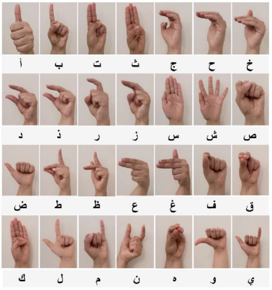 - Podder, K.K.; Ezeddin, M.; Chowdhury, M.E.H.; Sumon, M.S.I.; Tahir, A.M.; Ayari, M.A.; Dutta, P.; Khandakar, A.; Mahbub, Z.B.; Kadir, M.A. Signer-Independent Arabic Sign Language Recognition System Using Deep Learning Model. Sensors 2023, 23, 7156. [Google Scholar] [CrossRef]
