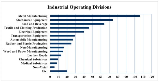 The Sinpyeong Jangrim Industrial Complex comprises both small and large industries, with the majority of businesses in the complex being small and having lower annual air pollution emissions compared to the large ones. Although large businesses emit significant levels of pollution into the atmosphere (specifically metal manufacturing and mechanical equipment, which, based on the PRTR survey system, are the main sources of total alkane emission in the area), their number is limited [11]. On the other hand, while the contribution of small businesses to air pollution is lower compared to large businesses, the sheer number of small businesses can have a notable influence on atmospheric pollution. In this study, among 497 operating divisions in Busan’s Sinpyeong Jangrim Industrial Complex, 29 large industries reported their industrial air pollution emissions to the government through the PRTR survey. Therefore, it can be said that the role of small businesses in the annual air pollution emission reported by PRTRs was ignored.