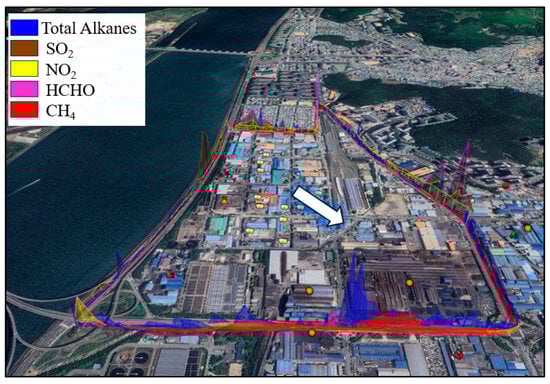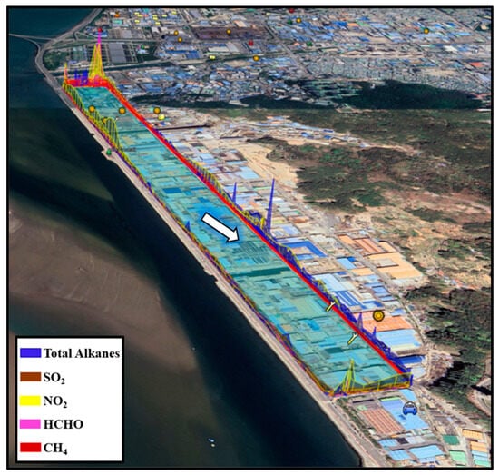 The concentration of anthropogenic sources in urban areas often challenges cities to meet air quality standards. Busan, South Korea’s second most populous city after Seoul, hosts the Sinpyeong Jangrim Industrial Complex, comprising 497 industrial facilities spanning metal manufacturing, mechanical and electrical equipment, food and beverage industries, textile and clothing production, transportation equipment, automobile manufacturing, rubber and plastic production, wood and paper manufacturing, etc. Consequently, a significant volume of air pollutants, including sulfur dioxide (SO2), nitrogen dioxide (NO2), methane (CH4), alkanes, HCHO, and benzene, is annually released into the atmosphere from these factories. Notably, emissions of alkanes and alkenes from refineries and petrochemical industries primarily stem from evaporative losses from process equipment and storage tanks, while NO2 and SO2 emissions predominantly emanate from agricultural activities, industrial processes, and external combustion sources. Given that the Sinpyeong Jangrim Industrial Complex is intermixed with residential areas and emits substantial pollutants into the atmosphere, governmental attention has recently shifted towards this complex. In an initial effort, South Korea’s Ministry of Environment’s Chemical Safety Agency created the Pollutant Release and Transfer Registers (PRTRs) survey system to report annual air pollution emissions, including total alkanes, NO2, SO2, and HCHO, from large industries using optical remote sensing technologies. Although large businesses have a greater impact on atmospheric pollution, ignoring the share of small industries leads to an underestimation of their role in air pollution and regional atmospheric quality.