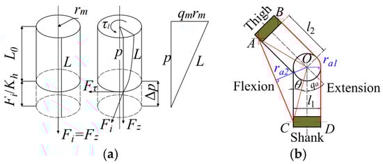 where denotes the vertical distance between the knee joint centers and Bowden cable. The distance on both sides of the knee joint can be expressed as: