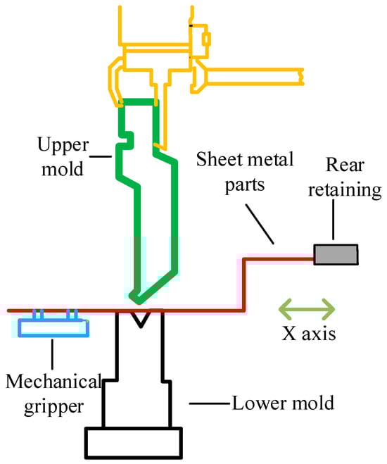 Sheet metal bending, a pivotal process in cold metalworking, holds paramount significance in industries such as home appliances and automotive manufacturing due to its strengths in high durability, lightweight construction, cost-effectiveness, and ease of manipulation [1,2,3]. As a vital industrial tool for this purpose, the bending machine has garnered widespread adoption in sheet metal processing due to its straightforward operation and robust process adaptability [4,5,6]. In the digital age, where consumer preferences diversify rapidly, the market’s appetite for personalized sheet metal components intensifies daily, necessitating the bending machinery’s compatibility with production paradigms characterized by small batch sizes, diverse product lines, and swift mold alterations [7,8]. However, conventional bending control systems, predominantly reliant on generic PLC-based numerical controls, exhibit limitations in terms of elevated costs, limited flexibility, and challenges in aligning with contemporary production demands. These drawbacks underscore the need for advancements in bending machine control systems to better cater to the evolving landscape of manufacturing.