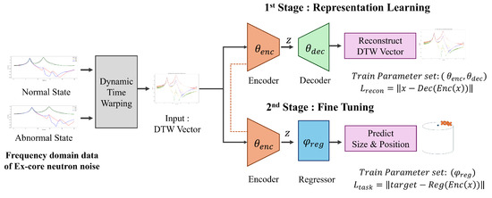 The structure of this paper is as follows. First, a review of existing research on fault diagnosis for nuclear reactor internal structures is provided, introducing the application of deep-learning techniques in vibration analysis. Next, the Section 3 covers the dynamic time warping (DTW) algorithm and autoencoder-based representation learning proposed in this study. Following this, the dataset, experiment setup, and training and validation results of the model are presented. Finally, the conclusions summarize the research’s findings and suggest directions for future research.