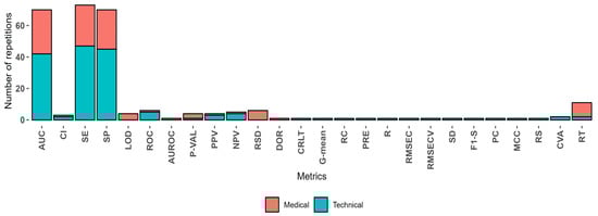 In total, 152 components are analyzed to detect colorectal cancer. It is important to note that these elements underwent analysis using six medical devices and 24 specialized sensors [,,,,,,,,,,,,,,,,,,,,,,,,,,,,,,,,,,,,,,,,,,,,,,,,,,,,,,,,,,,,,,,,,,,,,,,,,,,,,,,,,,].