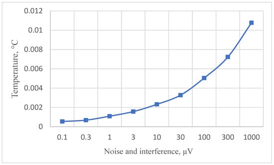 Figure 2 shows that with the rise in the noise level and residual interference, error due to heating the RTD with the optimal operating current increases considerably. Therefore, during high-precision measurements in harsh conditions, it is reasonable to correct this error. But when conducting high-precision relative measurements even under laboratory conditions (the random ADC error level is up to 10 μV), taking into account the heating of the RTD by the operating current, even when setting its optimal value, becomes necessary.