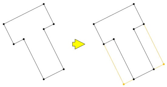 The technique improvement for non-rectangle footprints has a viable solution: creating new algorithms to replace complex orthogonal polygons with a combination of rectangles, as demonstrated in Figure 5 from the work of Sugihara et al. []. The key points in this solution are as follows: