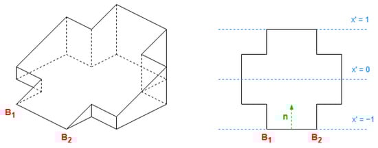In the previous research by the same authors [], the method used to reconstruct the buildings was adapted to be valid for any footprint. This work will process independently these buildings with a simple footprint with an easier theory.