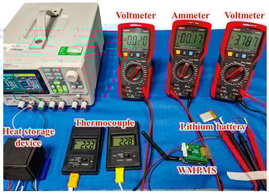 In this section, the feasibility of the energy self-supply module is verified, and the output power is analyzed and calculated. To simulate the temperature variation process of the aircraft wing during flight, including take-off, flight, and landing, a thermoelectric cooler (TEC) is adopted to control and change the temperature of the thermoelectric generator, by which the output voltage can be generated. The schematic and physical diagram of the experimental setup are shown in Figure 14 and Figure 15.