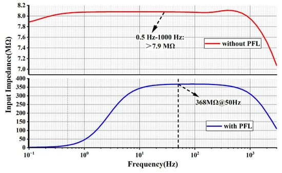 The input impedance comparison of AFE (top) without PFL and (bottom) with PFL.