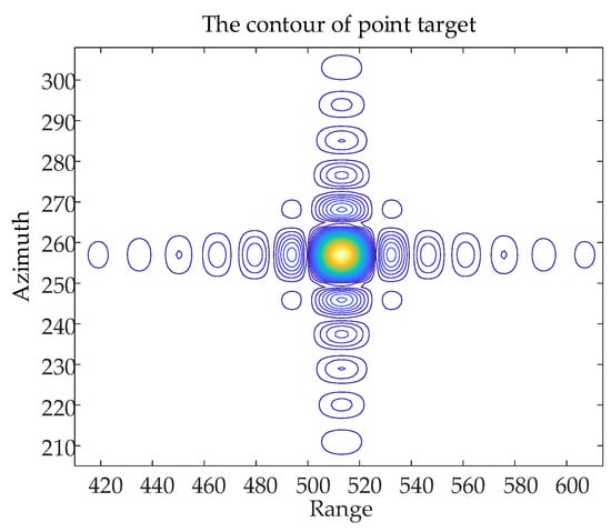 The contours of the point target P1 are shown in Figure 19 and the array–direction and distance–direction response functions corresponding to the point target are shown in Figure 20.