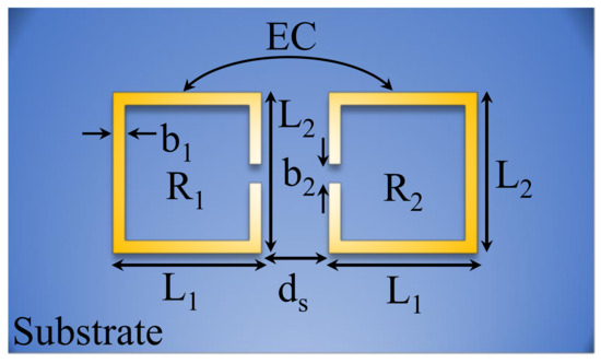 Since electric coupling is predominant in the structure shown in Figure 1, the magnetic coupling can be ignored. In this case, the electric coupling coefficient () can be expressed as [43]