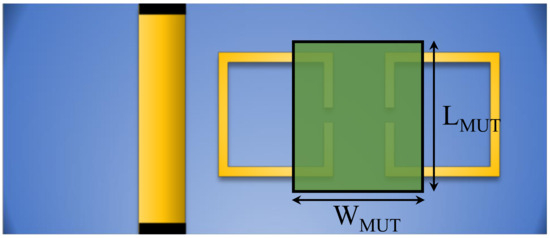 where and represent the electric field of each resonator at the resonance frequency [42]. The dot product between the fields can produce a positive or negative sign, indicating that the electric can either support or cancel each other out [42], and represents the permittivity of the entire effective volume that contains the electric field components. Therefore, by disrupting the electric field distribution with a dielectric material under test, changes in can be observed. This observation forms the basis of the designed sensing system.