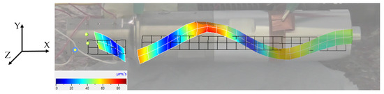 Figure 8. Bending vibration shape of the ultrasonic system. - 30,859 Hz: combined bending and longitudinal mode;