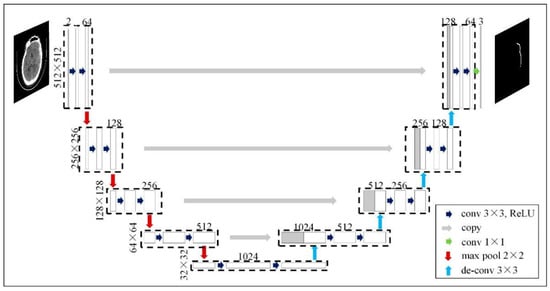 Example of U-Net architecture for input image 512 × 512 (adapted from []).